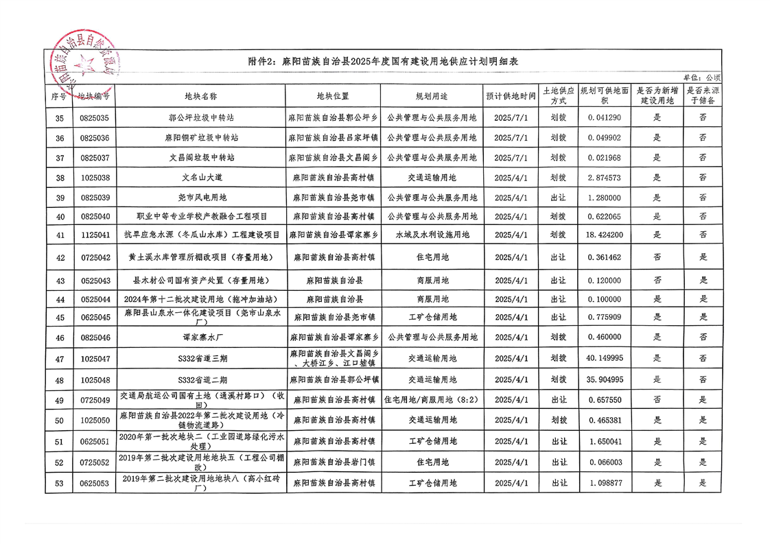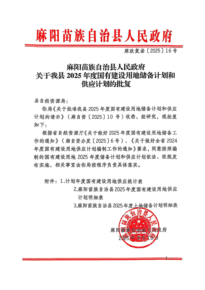 麻陽苗族自治縣2025年度國有建設用地供應計劃文本