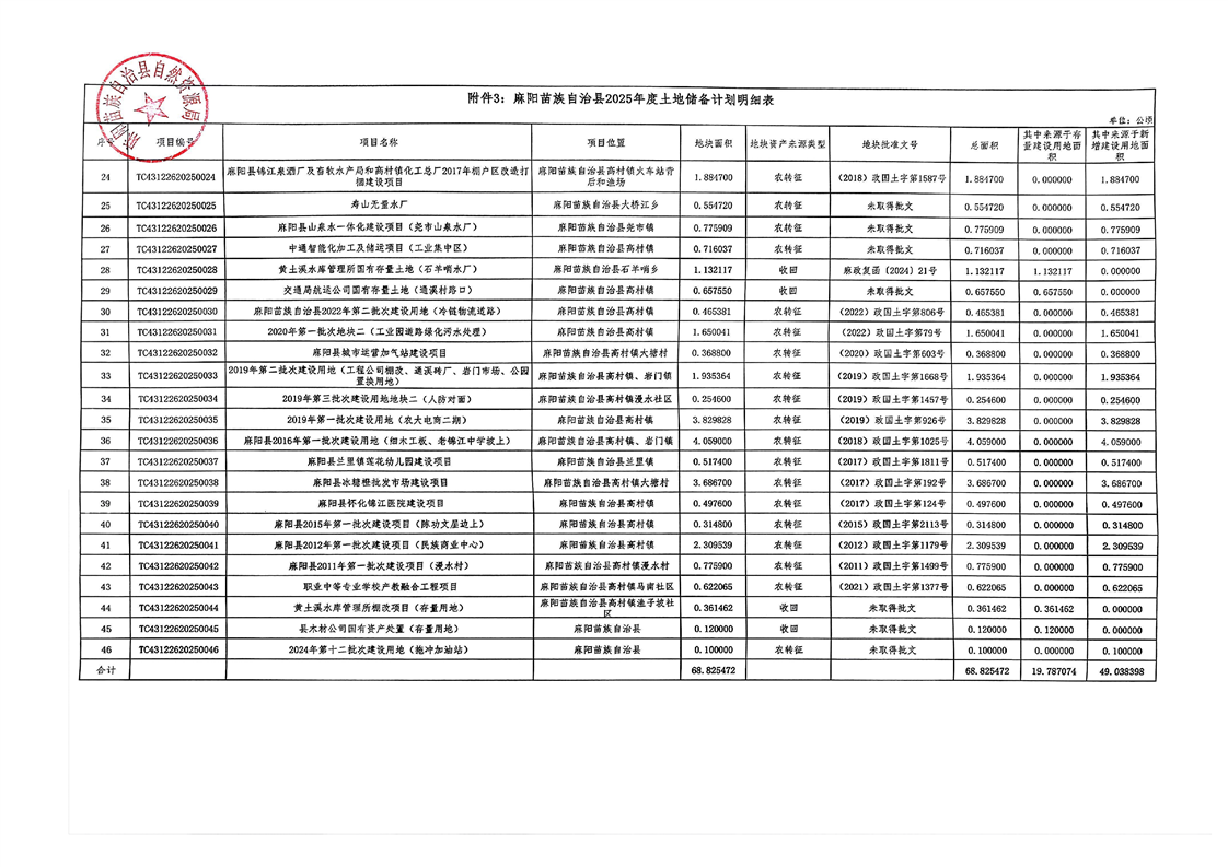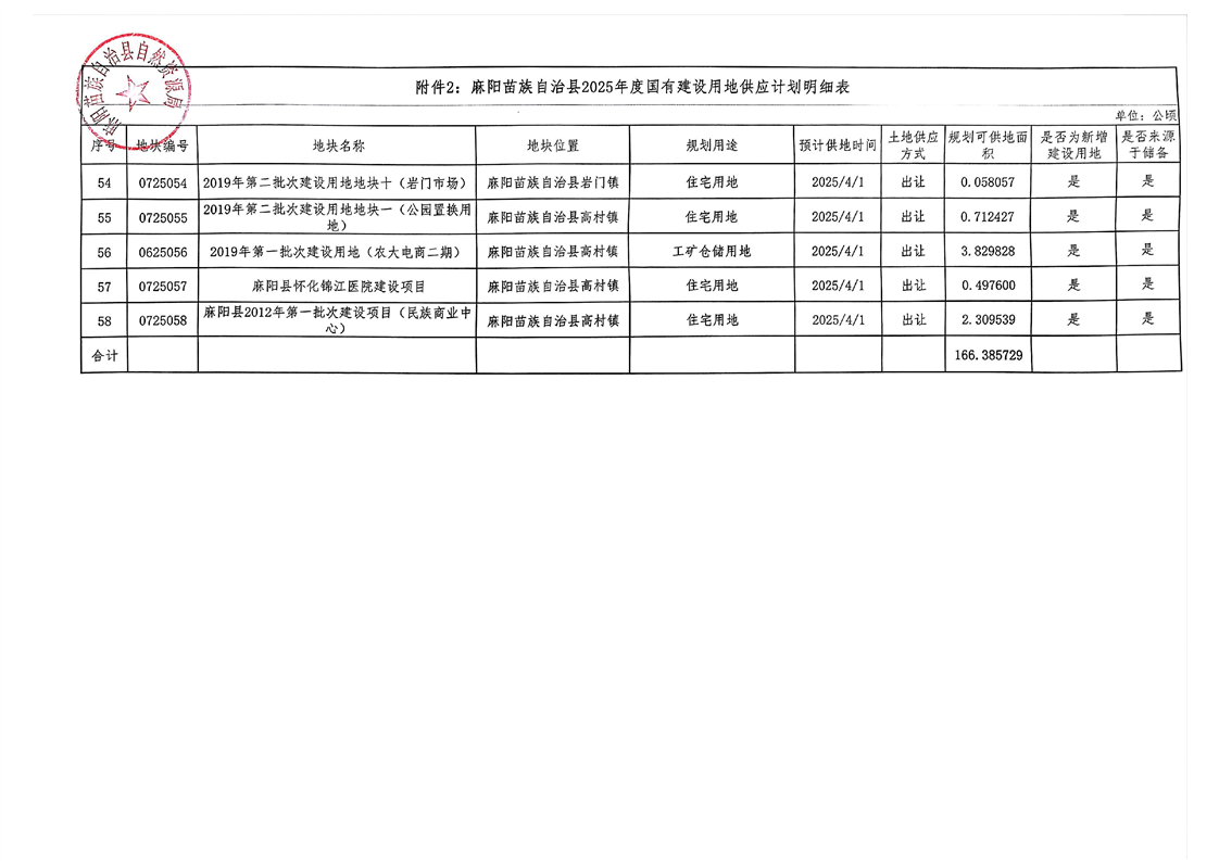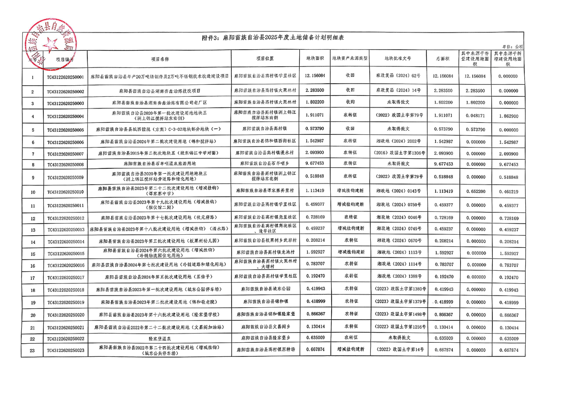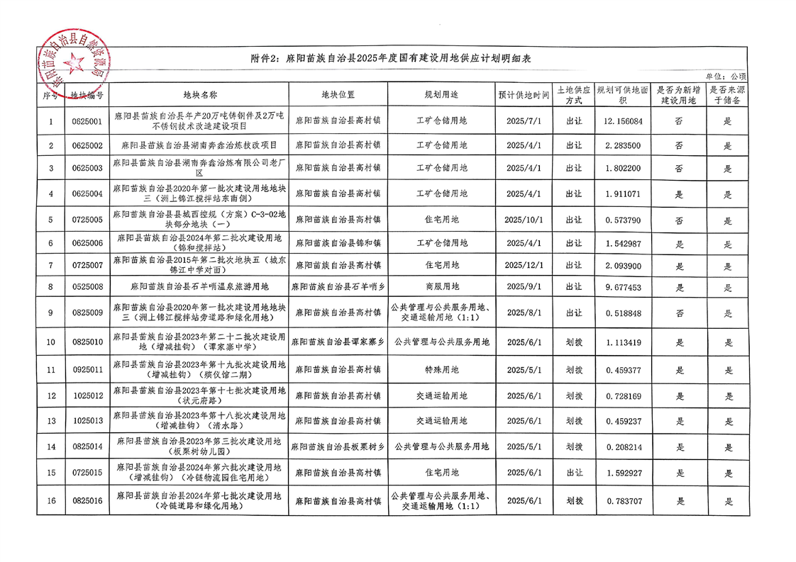 麻陽苗族自治縣2025年國有建設用地儲備計劃和供應計劃