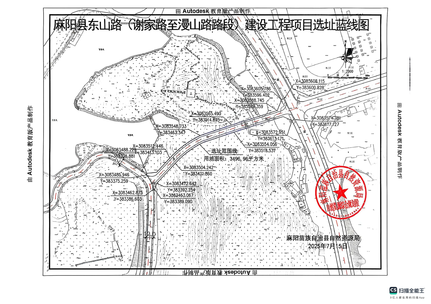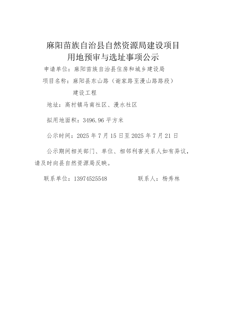 建設項目用地預審與選址事項公示(麻陽縣東山路(謝家路至漫山路路段)建設工程)