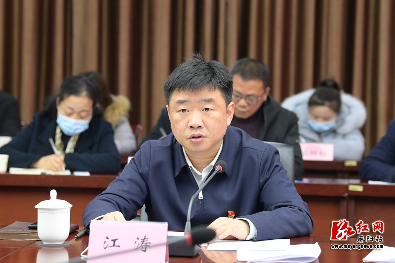 12月24日上午,市委黨史學習教育第二巡回指導組來麻指導黨史學習教育推進工作會議召開。縣委書記江濤主持會議並講話,市委黨史學習教育第二巡回指導組副組長劉堅到場指導。縣領導韓道旺、劉軍、向豔平參加。