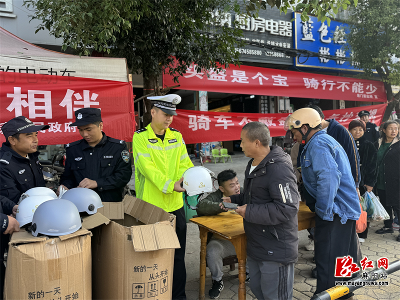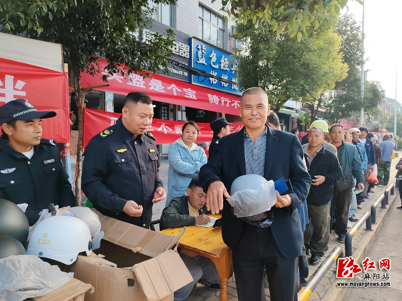 為進一步提升摩托車、電動車騎乘人員交通安全意識和防護水平,提高騎乘人員安全頭盔佩戴率,10月25日,岩門鎮聯合縣公安局交管中心、岩門鎮派出所開展“安全頭盔”免費發放活動。