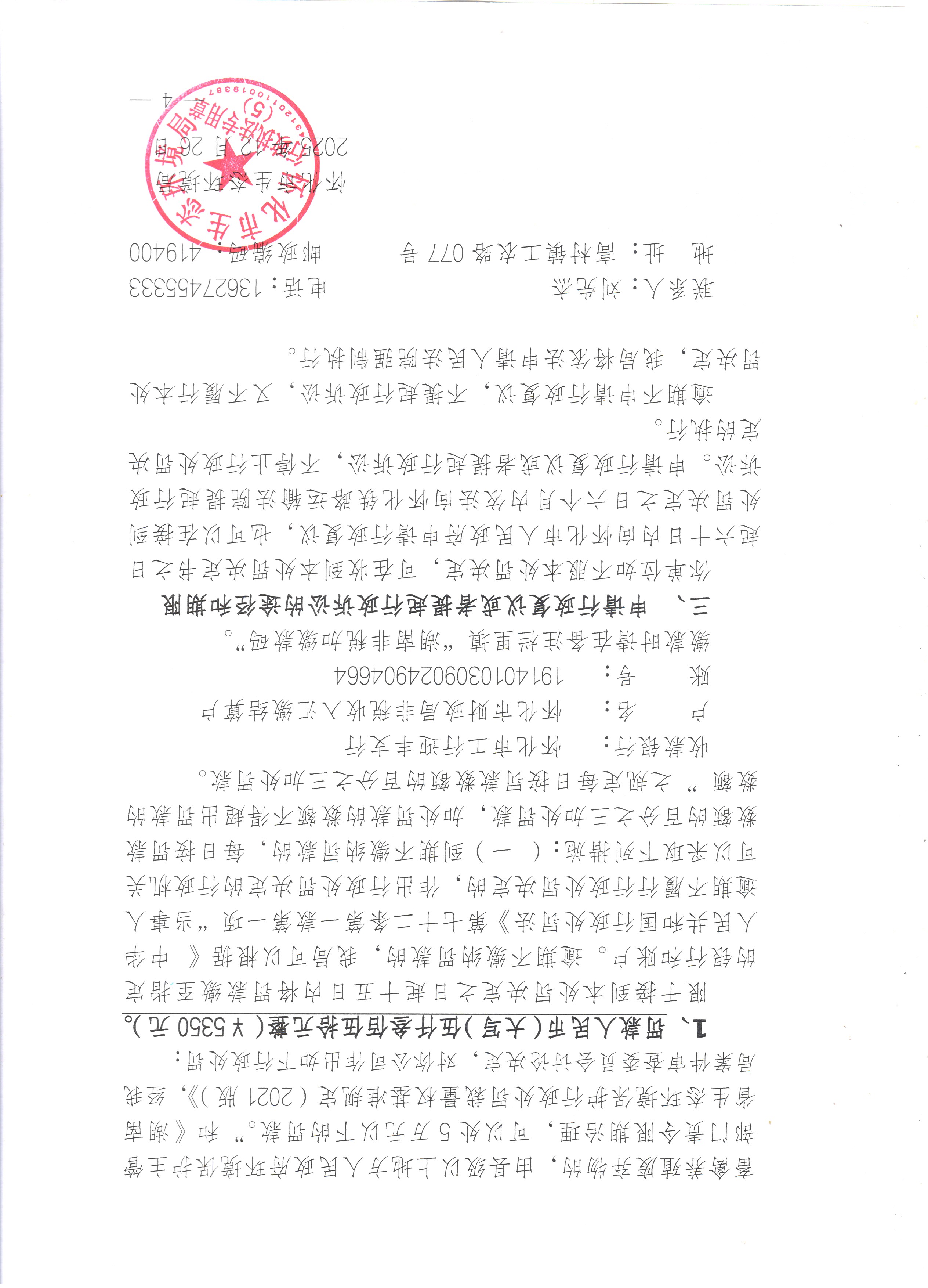 懷化市生態環境局行政處罰決定書 懷環麻罰〔2025〕07號