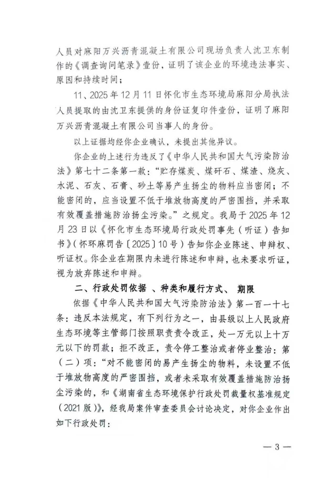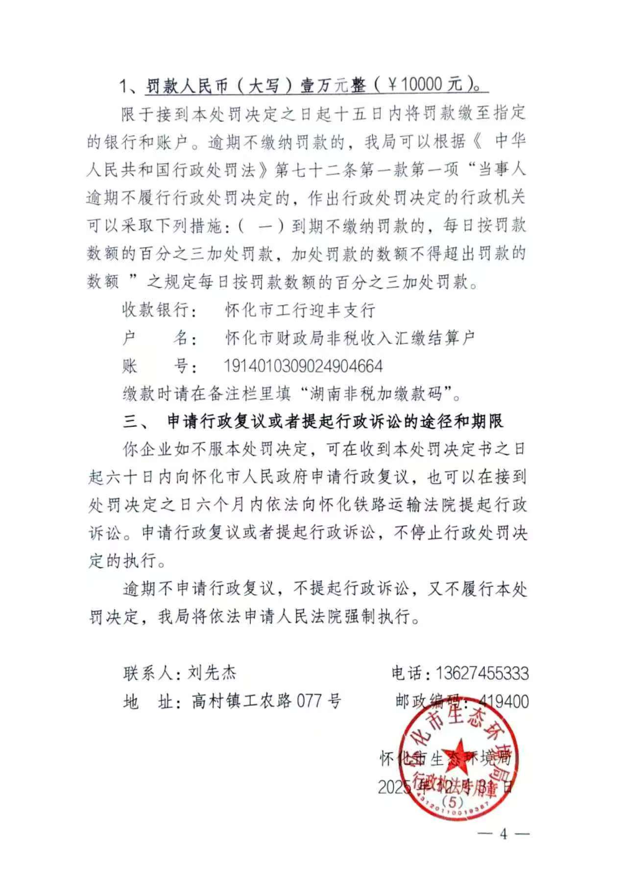 懷化市生態環境局行政處罰決定書 懷環麻罰〔2025〕10號