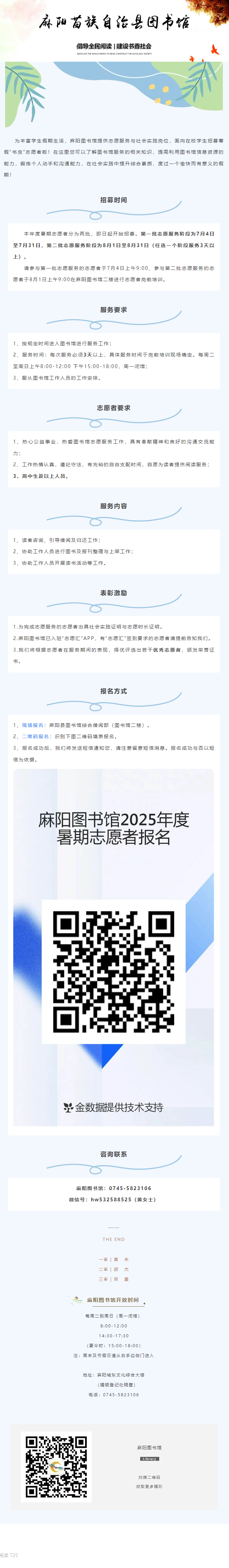 實踐證明+誌願時長!麻陽圖書館招募暑期誌願者