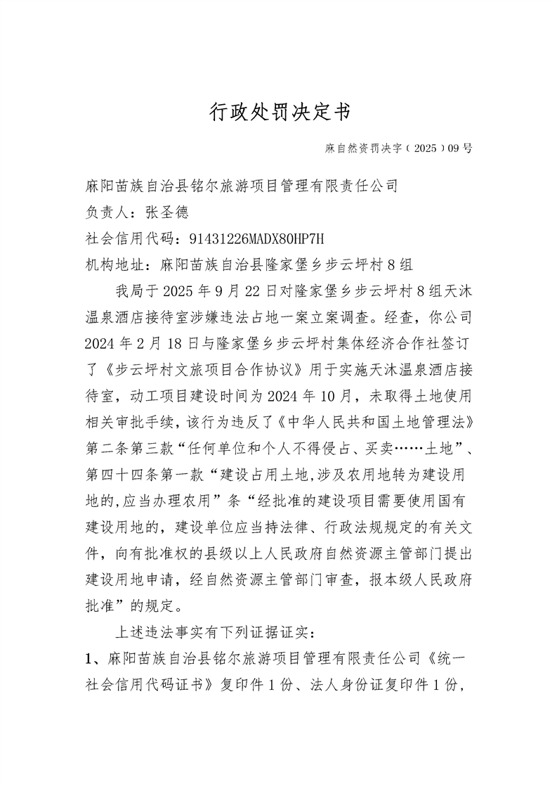 行政處罰決定書【2025】09號 麻陽苗族自治縣人民政府 https://www.zwgsc.com 發布時間: 2025-11-18 15:01 【字體:大 小】 分享到 來源:麻陽縣自然資源局 作者: