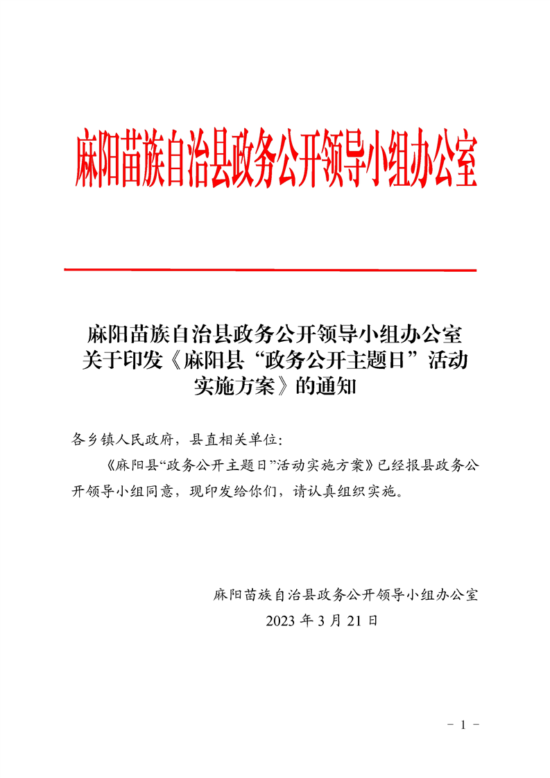 麻陽苗族自治縣政務公開領導小組辦公室關於印發《麻陽縣“政務公開主題日”活動實施方案》的通知