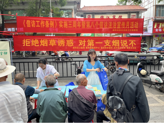 縣信訪局聯合縣紀委監委、縣公安局、縣司法局、縣衛健局、縣住建局、縣稅務局、高村鎮等9個部門在麻陽步行街路上集中開展了“信訪事項辦理流程”主題宣傳活動,讓人民群眾近距離了解《信訪工作條例》。活動通過懸掛條幅標語,設立谘詢台,擺放宣傳展板,發放宣傳資料等方式,向群眾講解信訪事項辦理流程相關知識,並對群眾關於依法信訪的問題進行講解。當天的活動發放宣傳單2000張、宣傳冊500多本,接受群眾谘詢220多人。