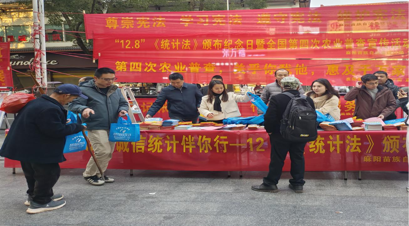 12月8日是《中華人民共和國統計法》頒布40周年紀念日,為深入學習貫徹習近平法治思想,紮實推進依法統計、依法治統,麻陽苗族自治縣統計局緊扣統計法治宣傳重點,開展了“政務公開主題日”暨係列“12·8”統計法主題宣傳活動,切實提升全社會統計法治意識。