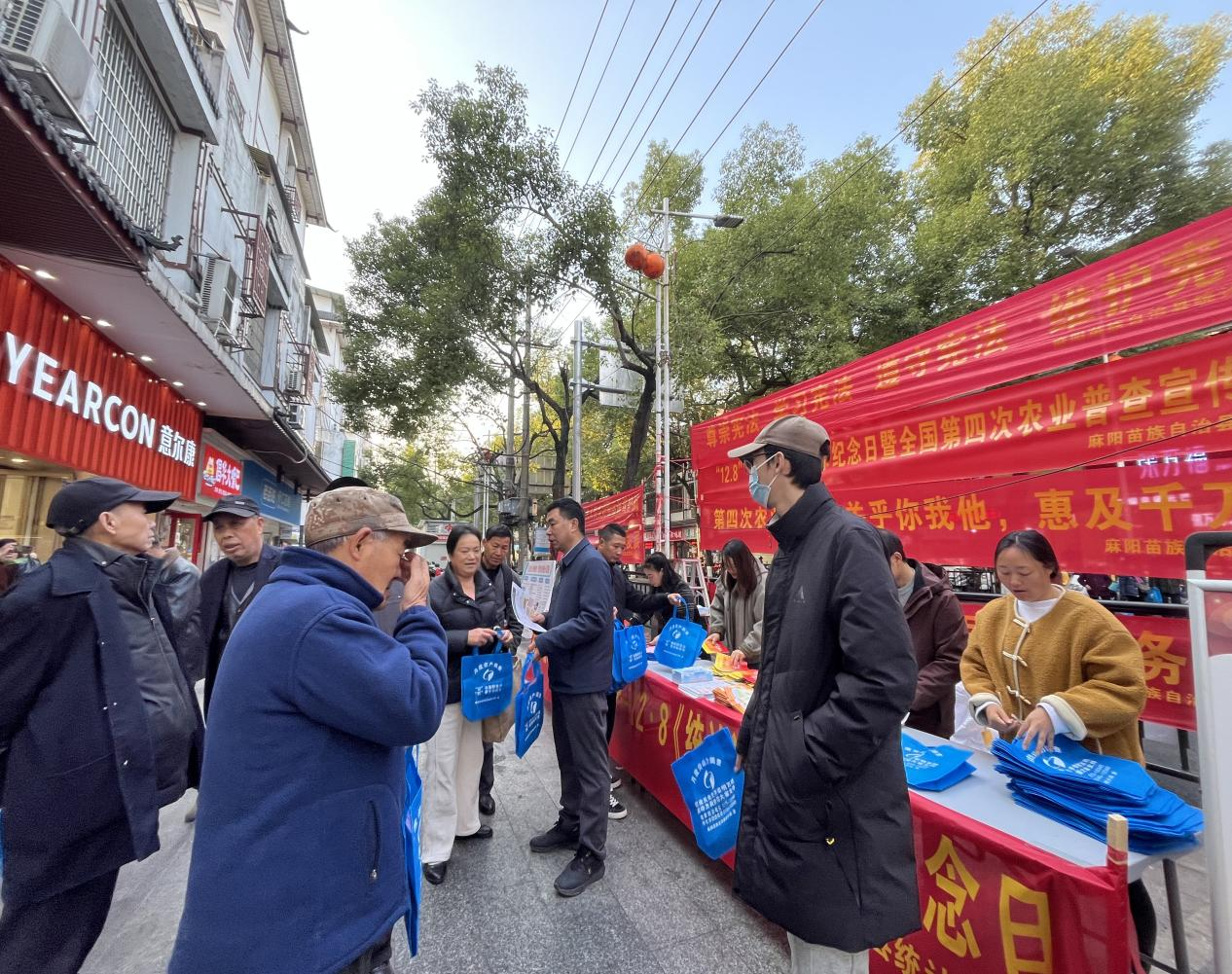 活動當天,縣統計局在人員密集的城區廣場設立宣傳陣地,通過懸掛主題橫幅、擺放普法展板、發放宣傳資料及定製禮品等形式,向過往群眾普及新修改《統計法》《統計法實施條例》等核心法規。工作人員結合第四次農業普查、勞動力調查、住戶調查普查等本地重點統計業務,用“麻陽話”和普通話進行雙語講解統計造假、數據瞞報等違法行為的法律後果,現場解答群眾關於統計數據采集、個人信息保護等疑問,累計發放宣傳資料6000餘份,接待谘詢群眾300餘人次。