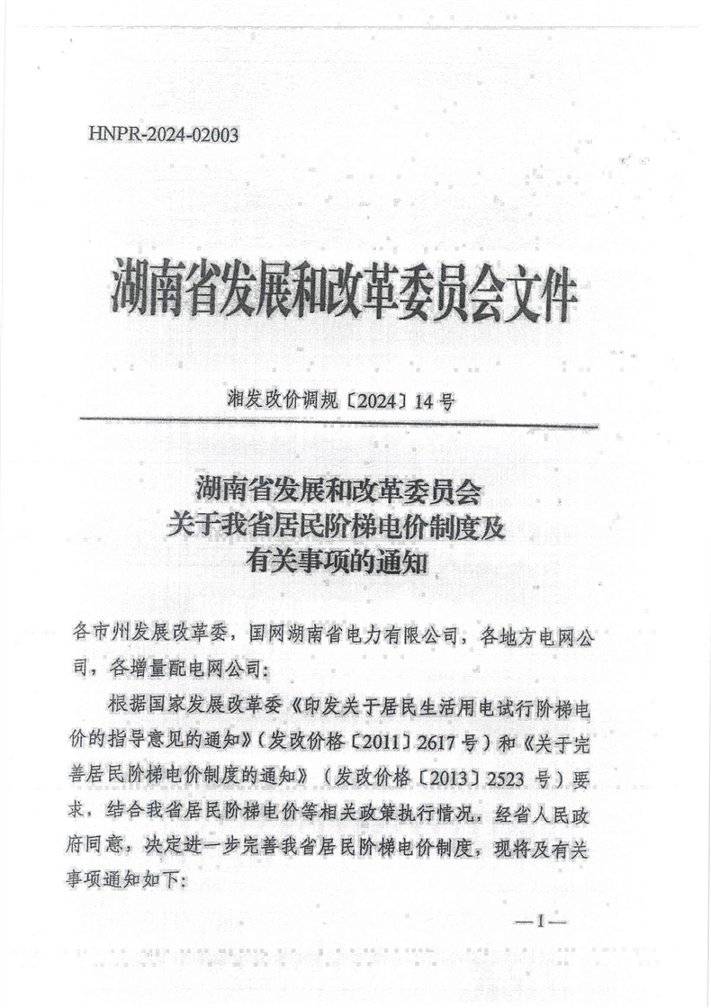 湖南省發展和改革委員會關於我省居民階梯電價製度及有關事項的通知 麻陽苗族自治縣人民政府 https://www.zwgsc.com 發布時間: 2024-01-26 11:51 【字體:大 小】 分享到 來源:湖南省發展和改革委員會辦公室 作者: