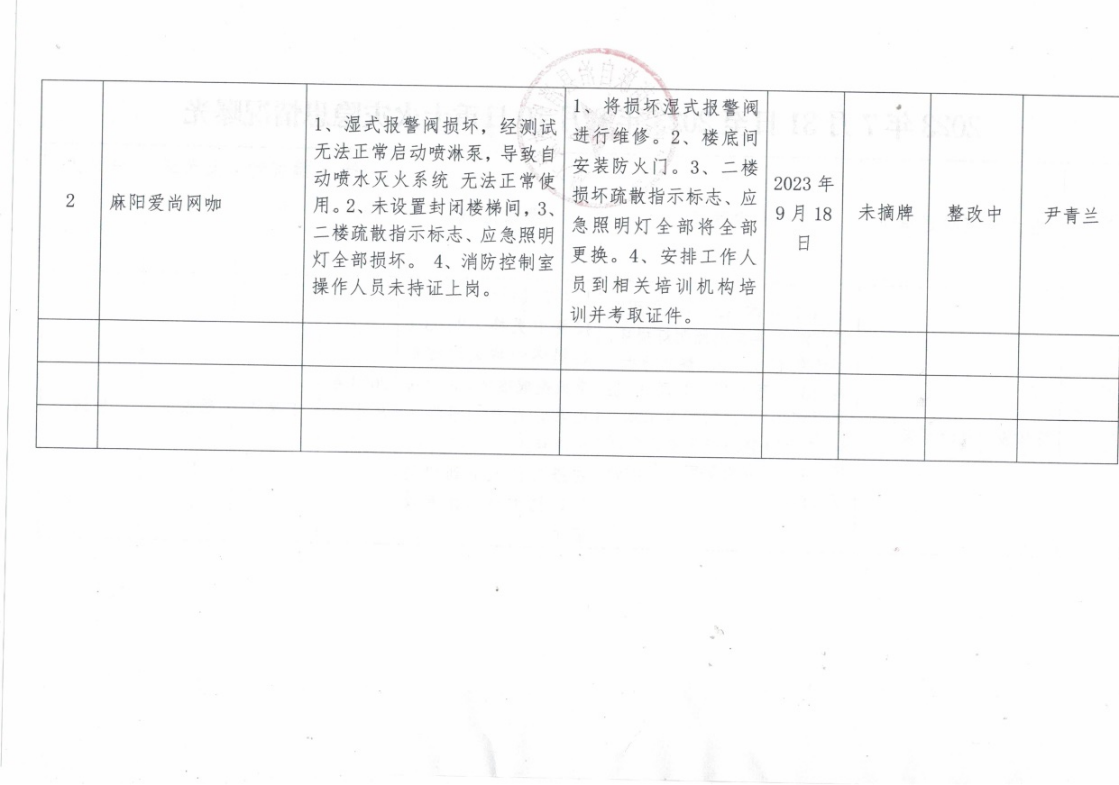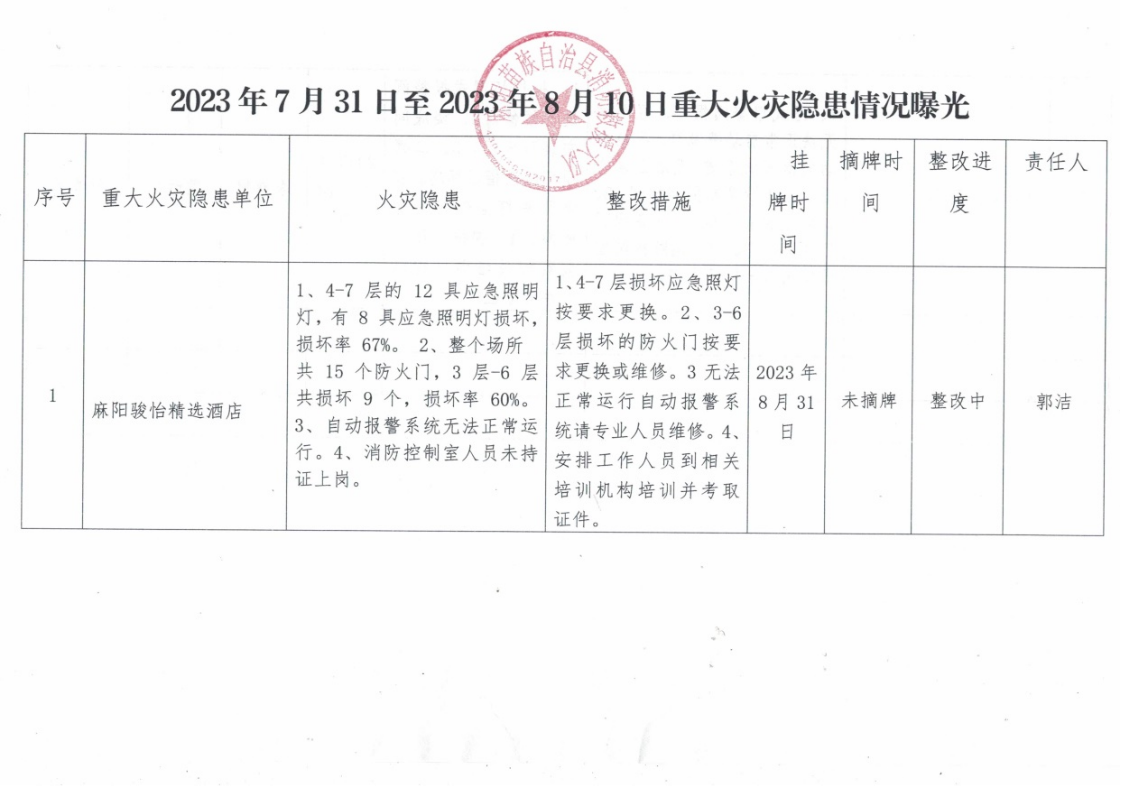麻陽苗族自治縣消防大隊2023年7月31日至8月10日重大火災隱患情況曝光 麻陽苗族自治縣人民政府 https://www.zwgsc.com 發布時間: 2023-08-15 11:34 【字體:大 小】 分享到 來源:麻陽縣應急管理局 作者: