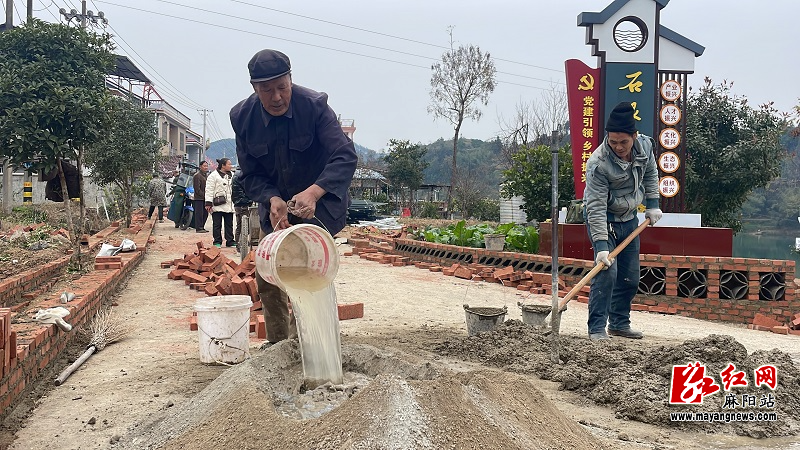 在村莊建設的熱潮中,石眼潭村八十二歲的老黨員舒代金精神矍鑠,身體力行,與村民們投工投勞,滿腔熱忱地為家鄉的建設添磚加瓦。他們的臉上洋溢著幸福的笑容,額頭淌下辛勤的汗水,共同交織成一幅和美鄉村新圖景,展現了石眼潭村蓬勃發展的生機與活力。