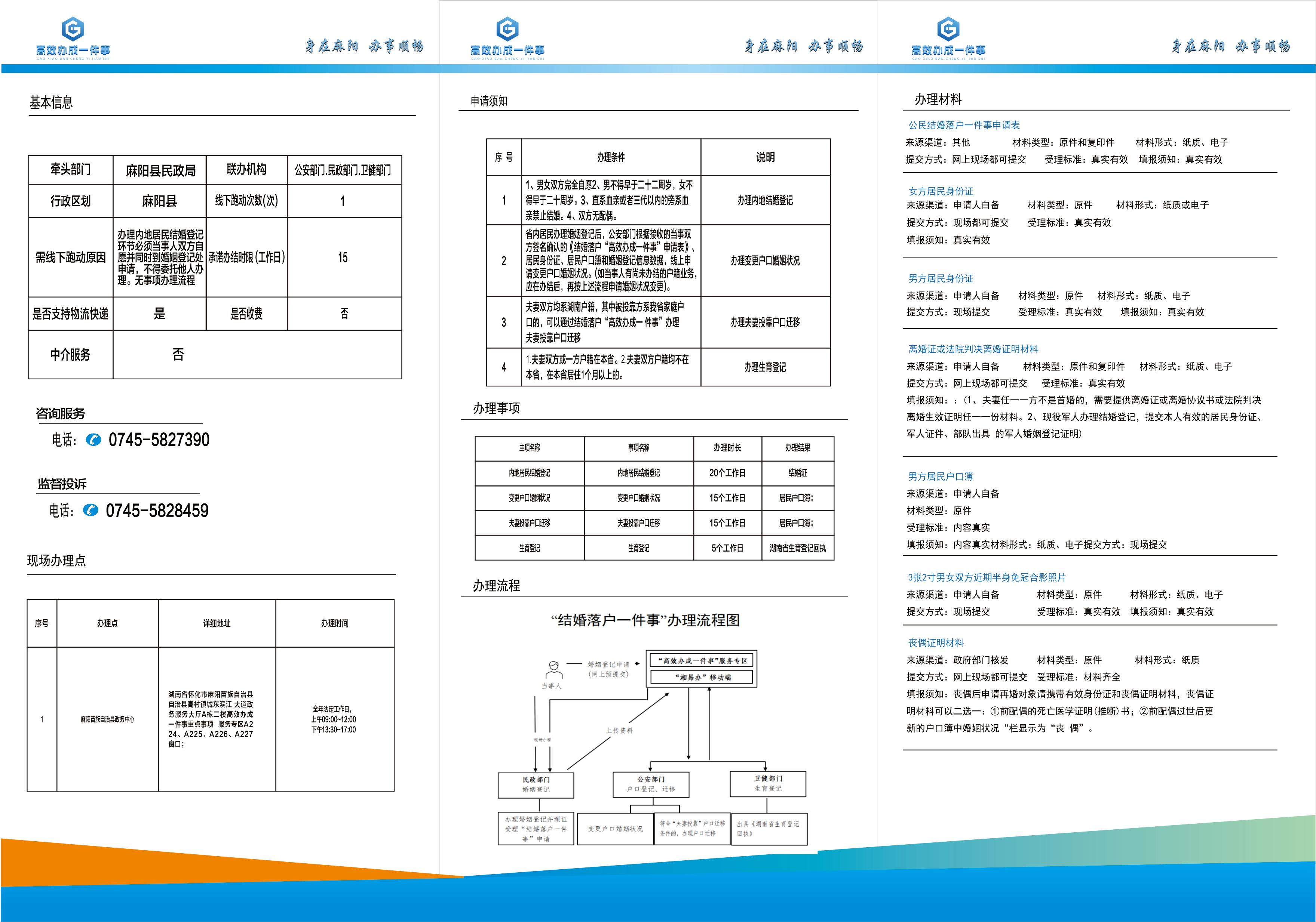 麻陽縣“高效辦成一件事“辦事指南——結婚落戶 麻陽苗族自治縣人民政府 https://www.zwgsc.com 發布時間: 2025-09-25 14:39 【字體:大 小】 分享到 來源:麻陽縣政務服務中心 作者: