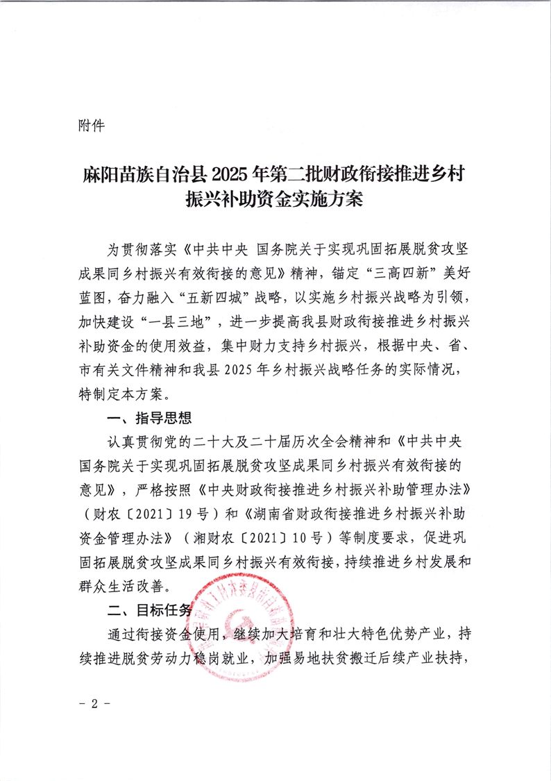 中共麻陽苗族自治縣委農村工作領導小組關於印發《麻陽苗族自治縣2025年第二批財政銜接推進鄉村振興補助資金實施方案》的通知 麻陽苗族自治縣人民政府 https://www.zwgsc.com 發布時間: 2025-08-06 08:57 【字體:大 小】 分享到 來源:麻陽縣農業農村局 作者: