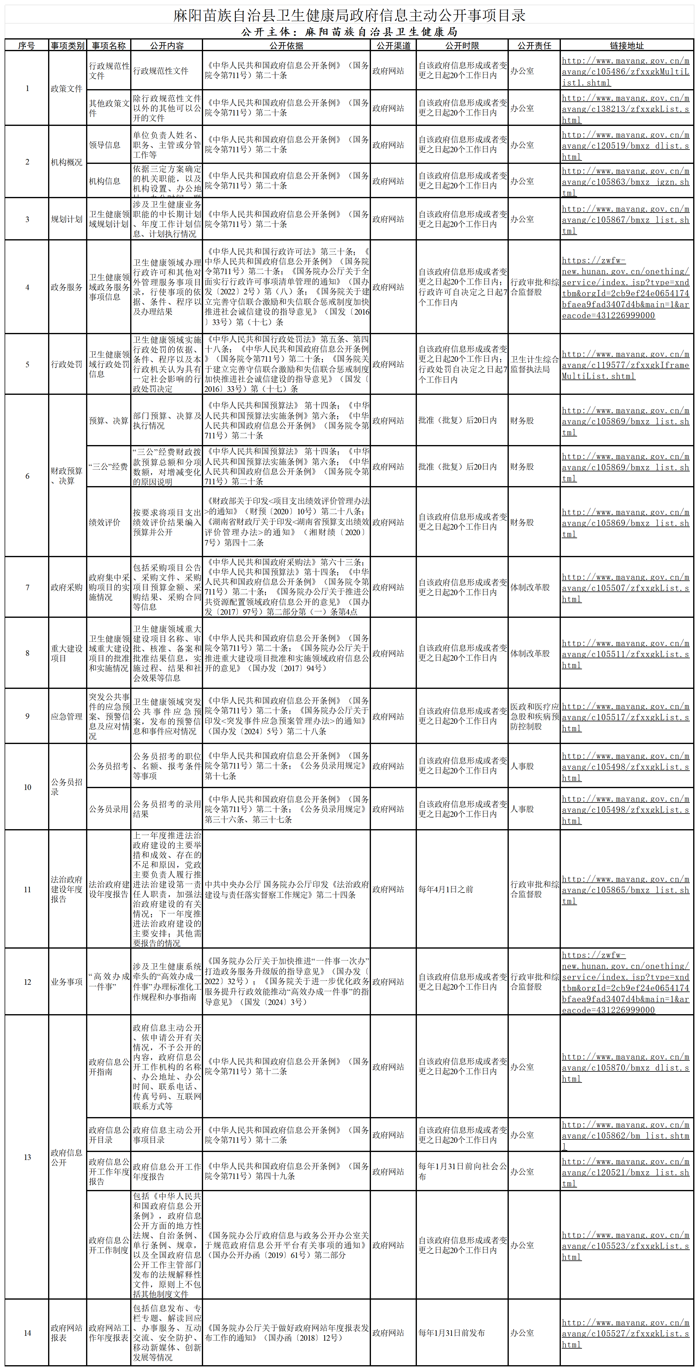 麻陽苗族自治縣衛生健康局政府信息主動公開事項目錄