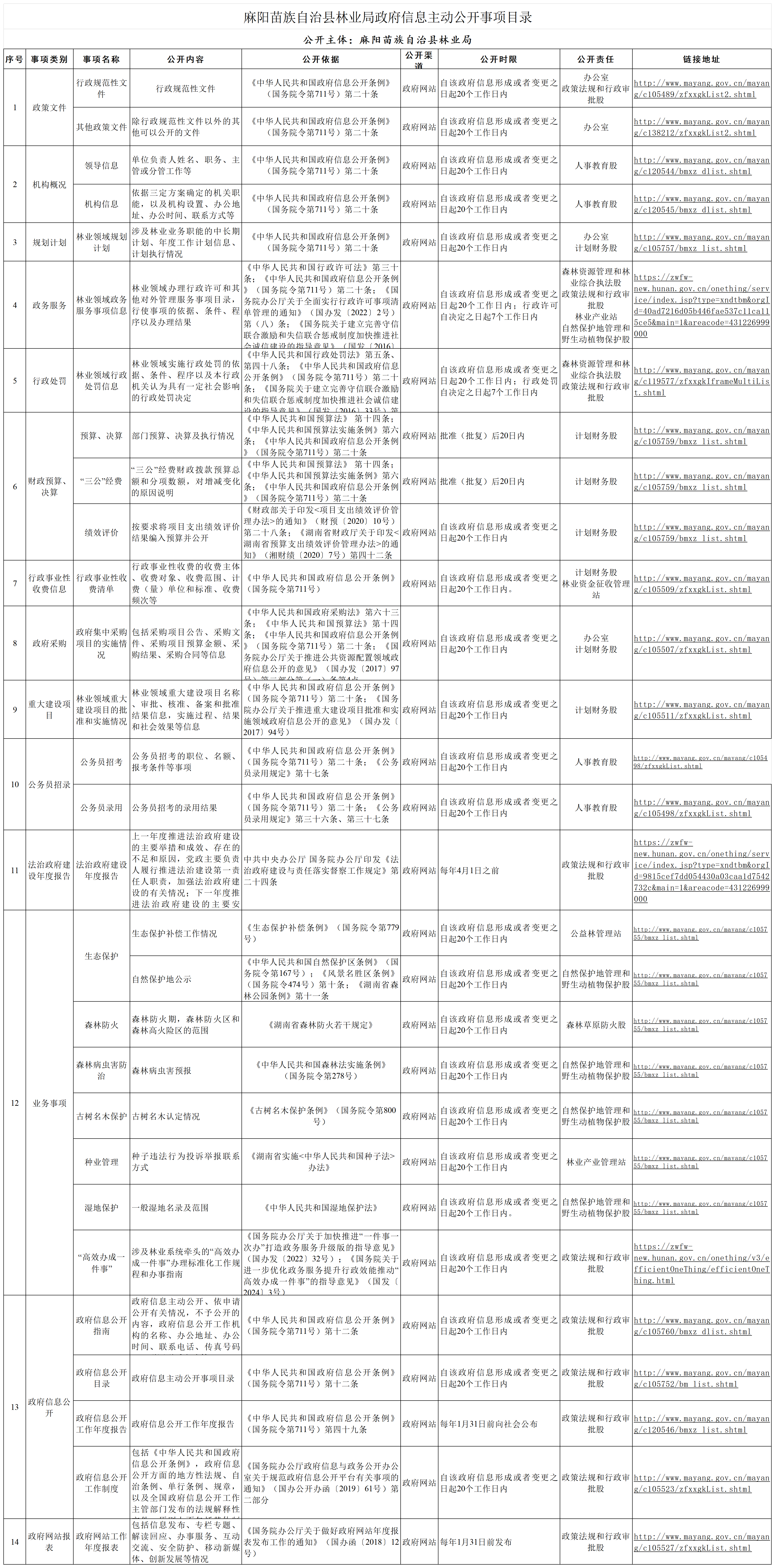 麻陽苗族自治縣林業局政府信息主動公開事項目 麻陽苗族自治縣人民政府 發布時間: 2025-12-22 15:50 【字體:大 小】 相關附件 展開 麻陽苗族自治縣林業局政府信息主動公開事項目錄.xlsx 分享到 來源:麻陽縣林業局 作者: