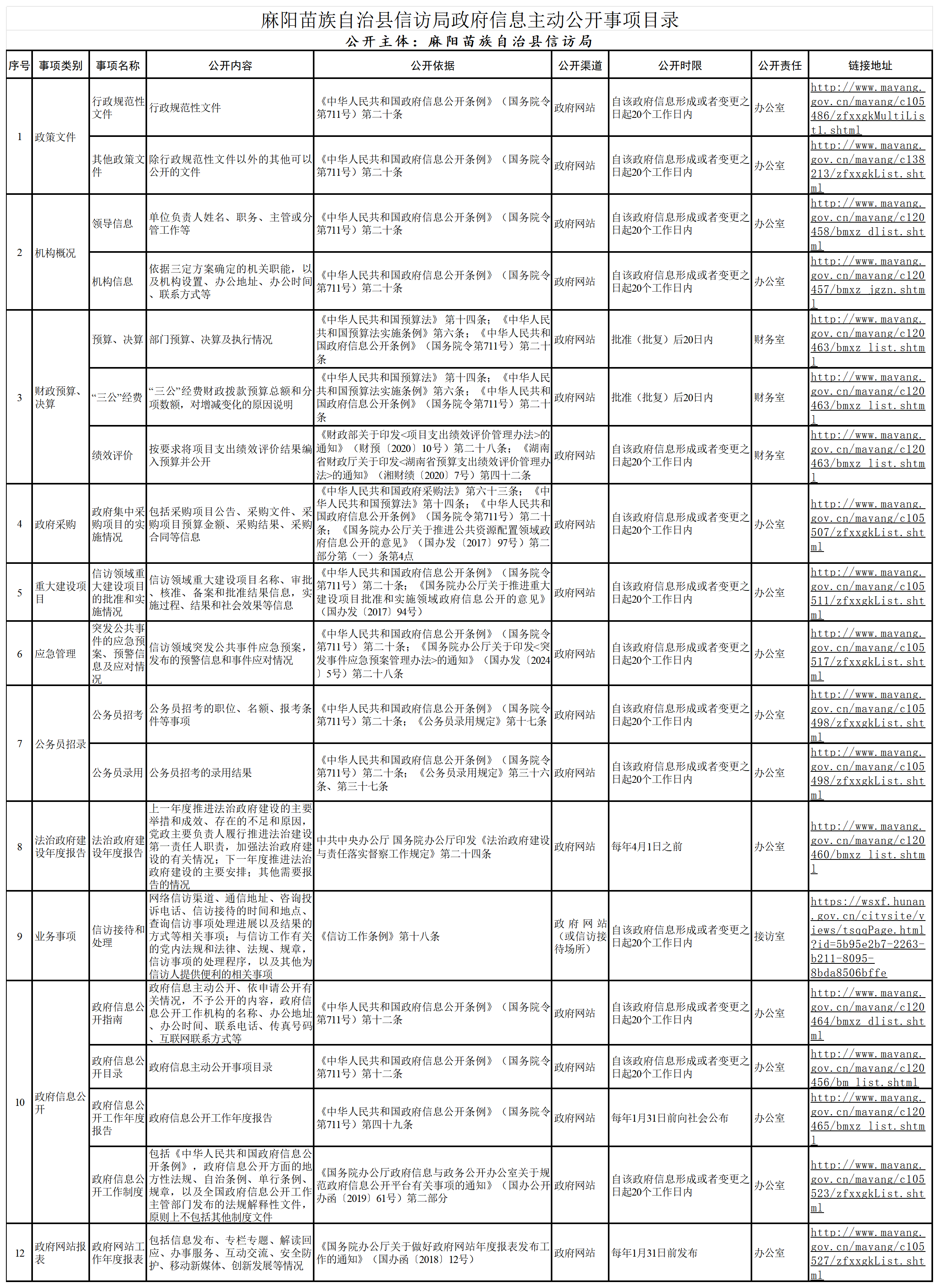 麻陽苗族自治縣信訪局政府信息主動公開事項目錄
